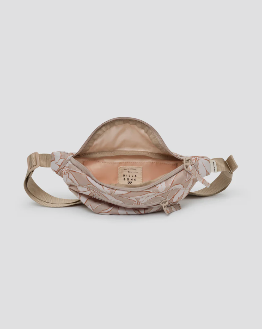 Keep essentials close in our Dahlia Waistbag, crafted from durable cotton canvas. This compact two-compartment pack (9" x 5" x 2") features a front zip pocket and internal slip pocket for organized storage. Finished with an embossed vegan-friendly patch, it's the perfect hands-free companion for festivals or everyday adventures.