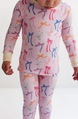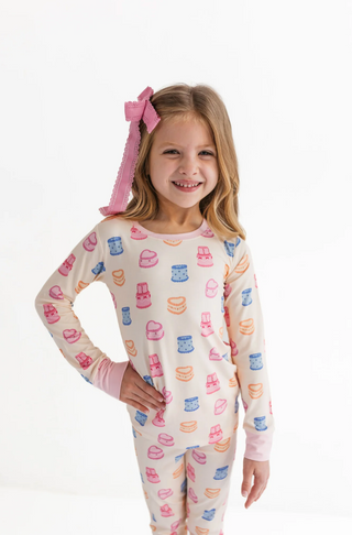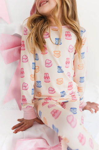 Rainbow Hearts Two-Piece Bamboo Short Sleeve Pajama Kids Pants Set