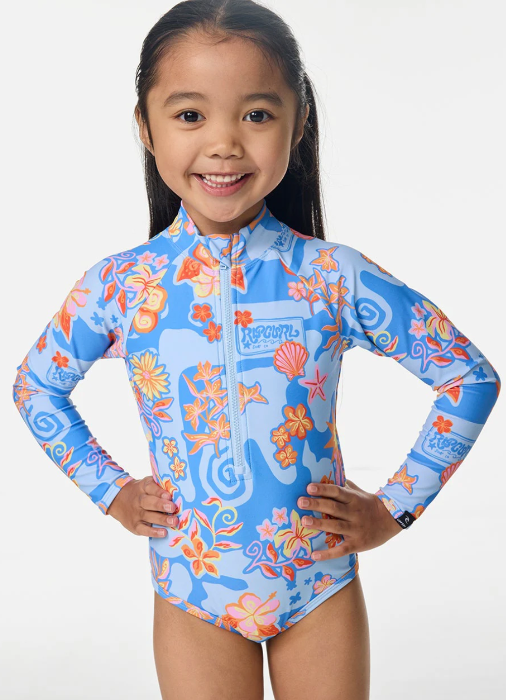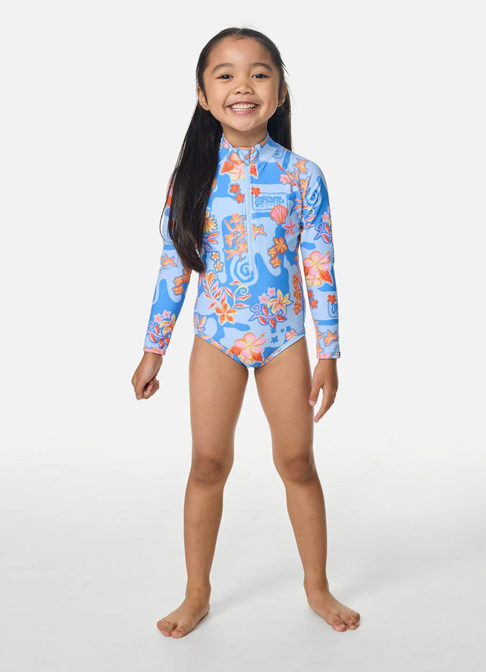 UPF 50+ sun protection and a front zip make the Surf Magic Surfsuit - Kids a functional surf piece, finished with all-over yardage print and recycled fabric for adventure-ready style.