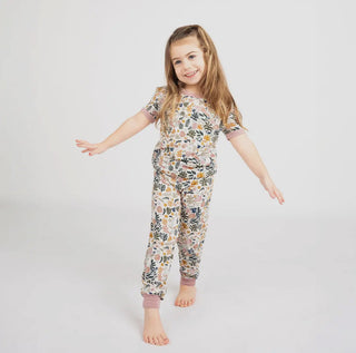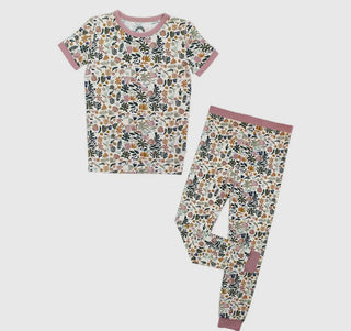 Dogs Bark Two-Piece Bamboo Short Sleeve Kids Pajama Pants Set (Blue/Multi)