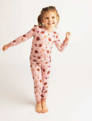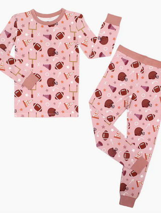 Football Game Day Girls Two-Piece Bamboo Long Sleeve Kids Pajama Pants Set