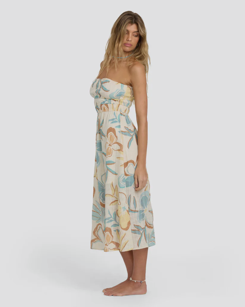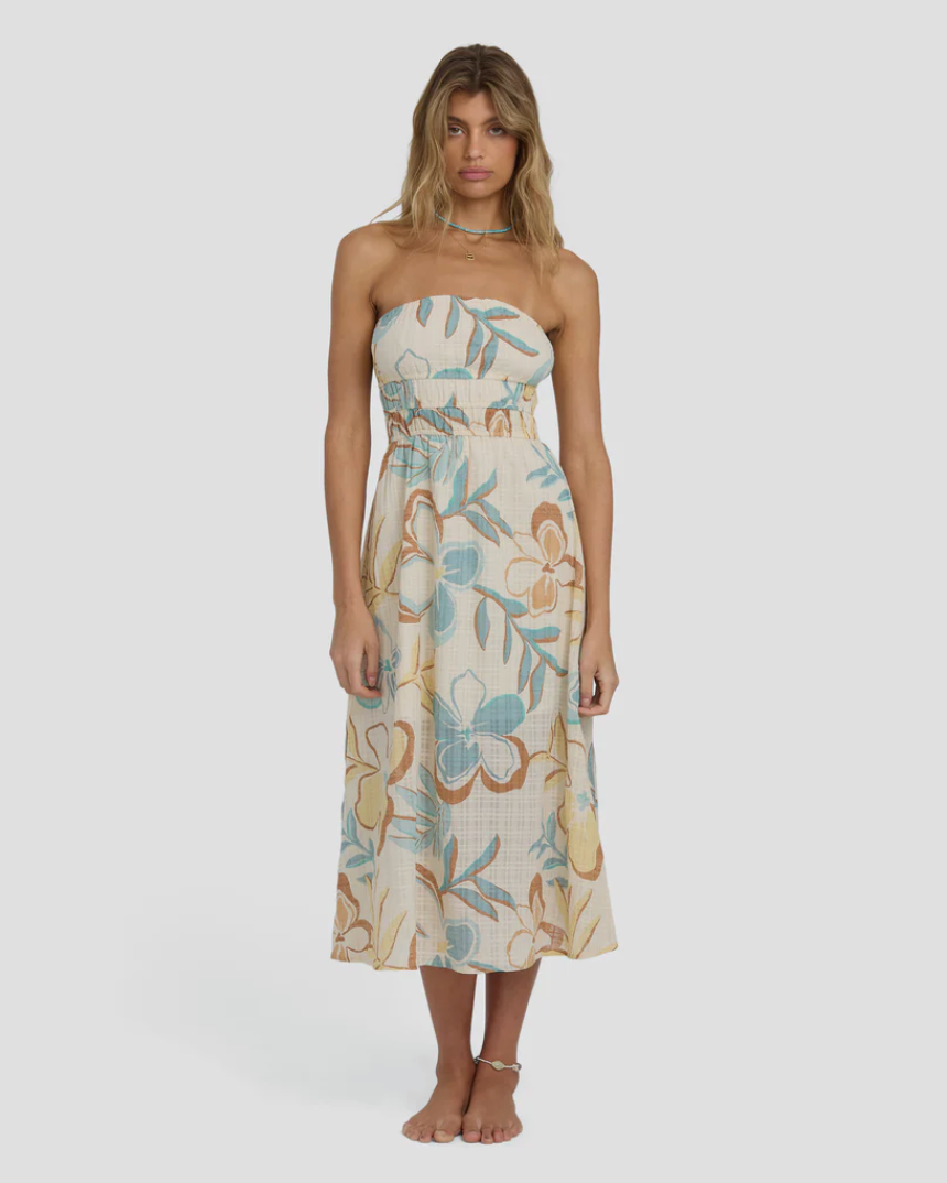 Our In The Sky Midi Dress boasts a flowy, 100% cotton silhouette with a fitted bodice and easy midi skirt. Featuring a strapless, sleeveless design accented by bold florals, this women's dress is lightweight and breezy for warm-weather wear. Featured here in the Whitecap colorway.