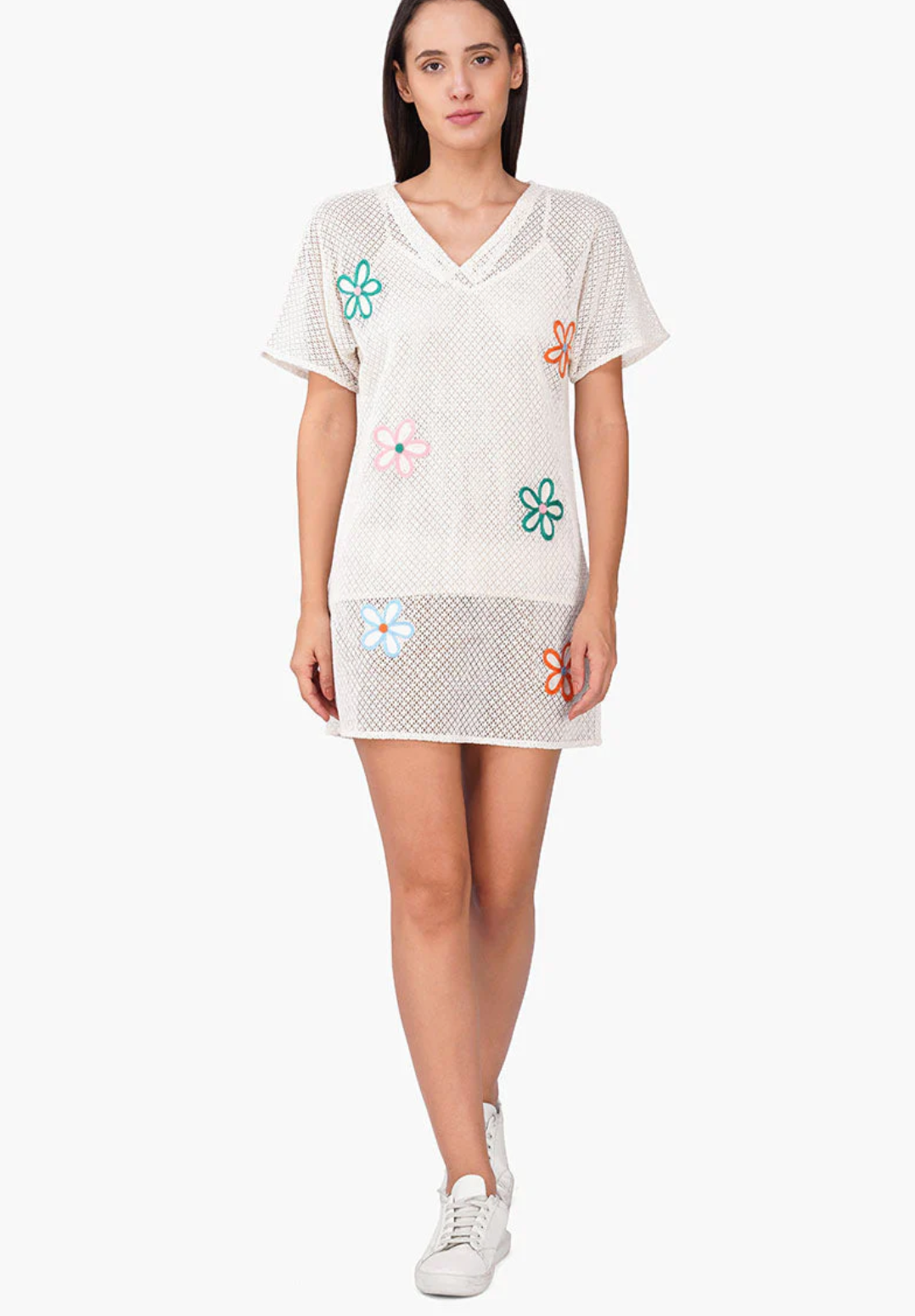 - Adorned with vibrant multi-floral embroidery