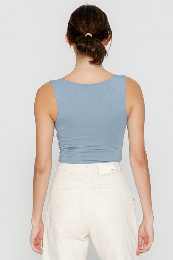 Solid Cropped Round Neck Tank (Ashley Blue)