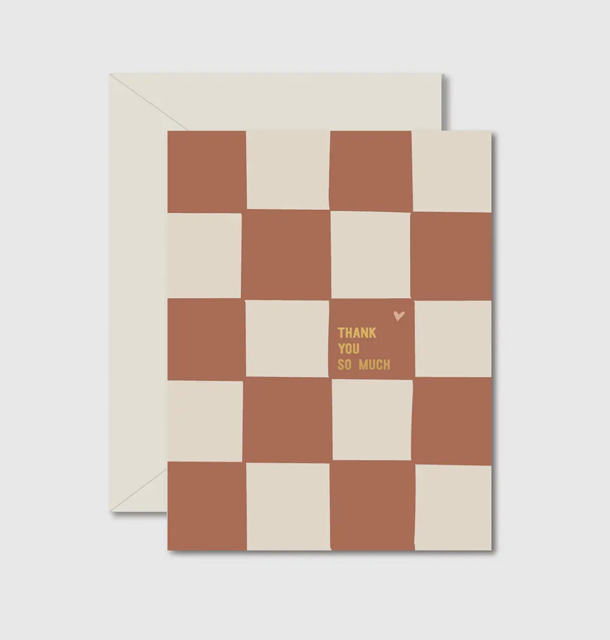 Beautiful terracotta and ivory Greeting Card with Gold Foil "thank you so much". Full - color 4.25" x 5.5" folded greeting card. Blank interior.