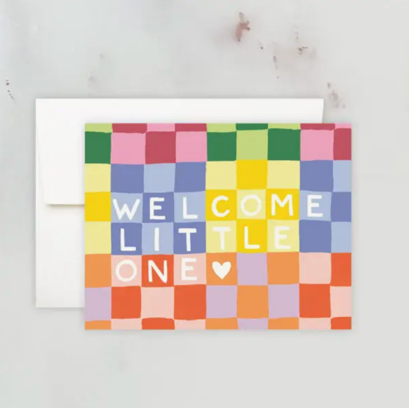 This sweetly simple and colorful hand-painted design welcomes the new addition!