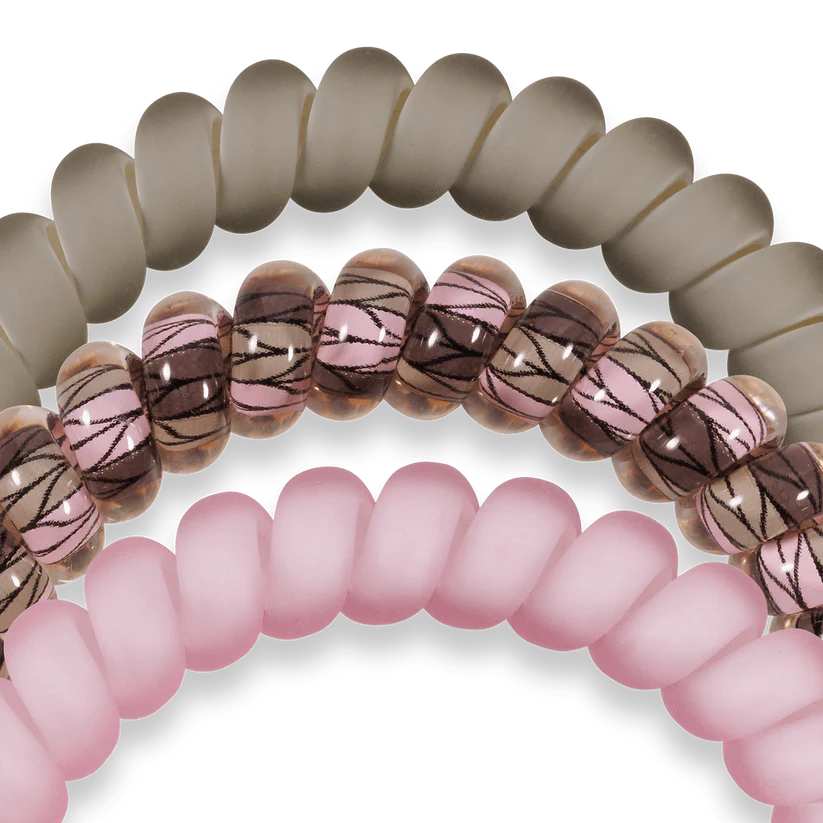 Sage it Ain't So Small Hair Ties in Pink and Sage offer a strong grip without damage, doubling as a chic wrist accessory when not in use. Your new favorite hair essentials all year round.