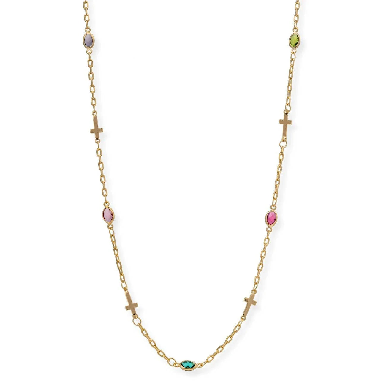 16" FIGARO CHAIN WITH A SMALL CZ CROSS CHARM