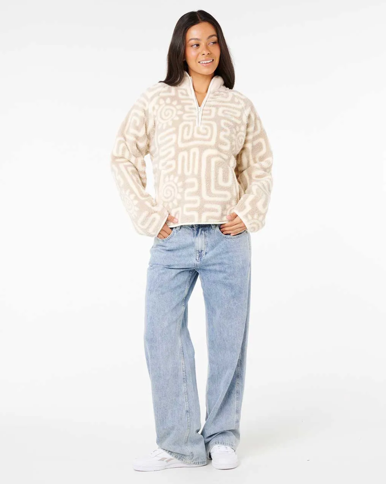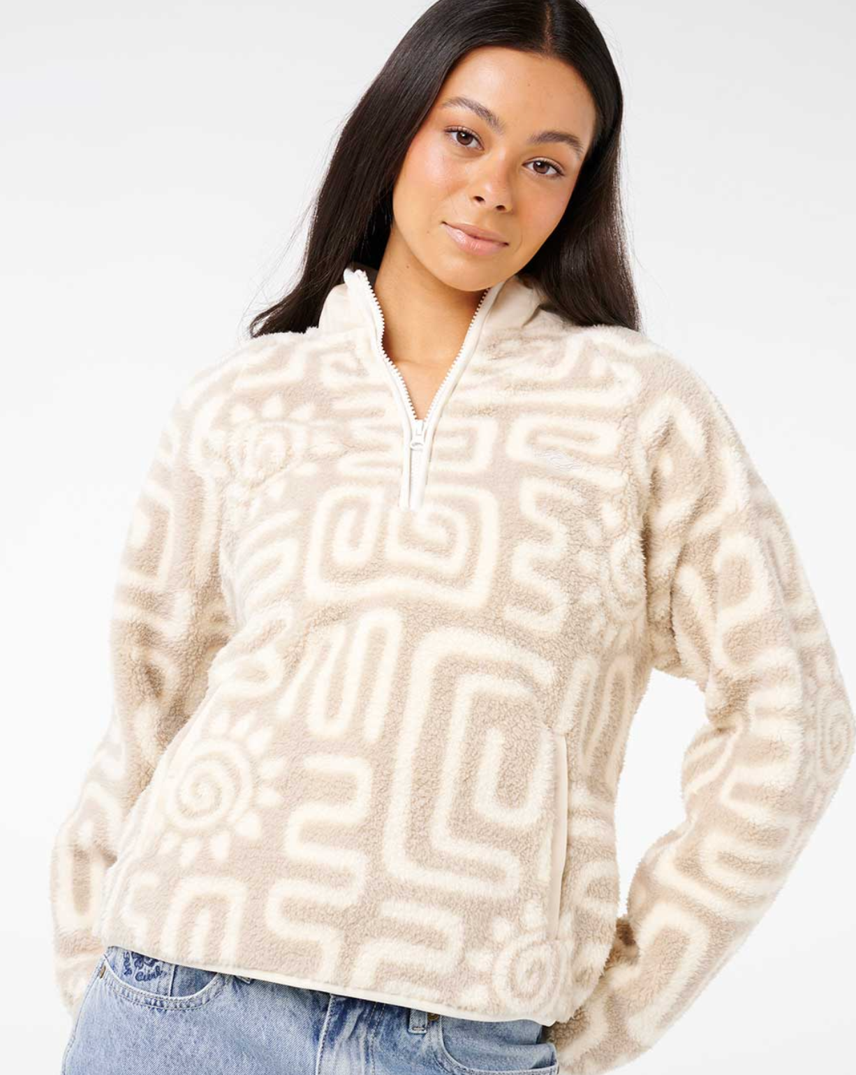 Made from soft microfleece, the Sunset Luau 1/4 Zip Polar Fleece offers cozy warmth in a standard fit. Featuring an all-over yardage print, quarter zip, and silicon badge branding, it’s an easy layering piece.