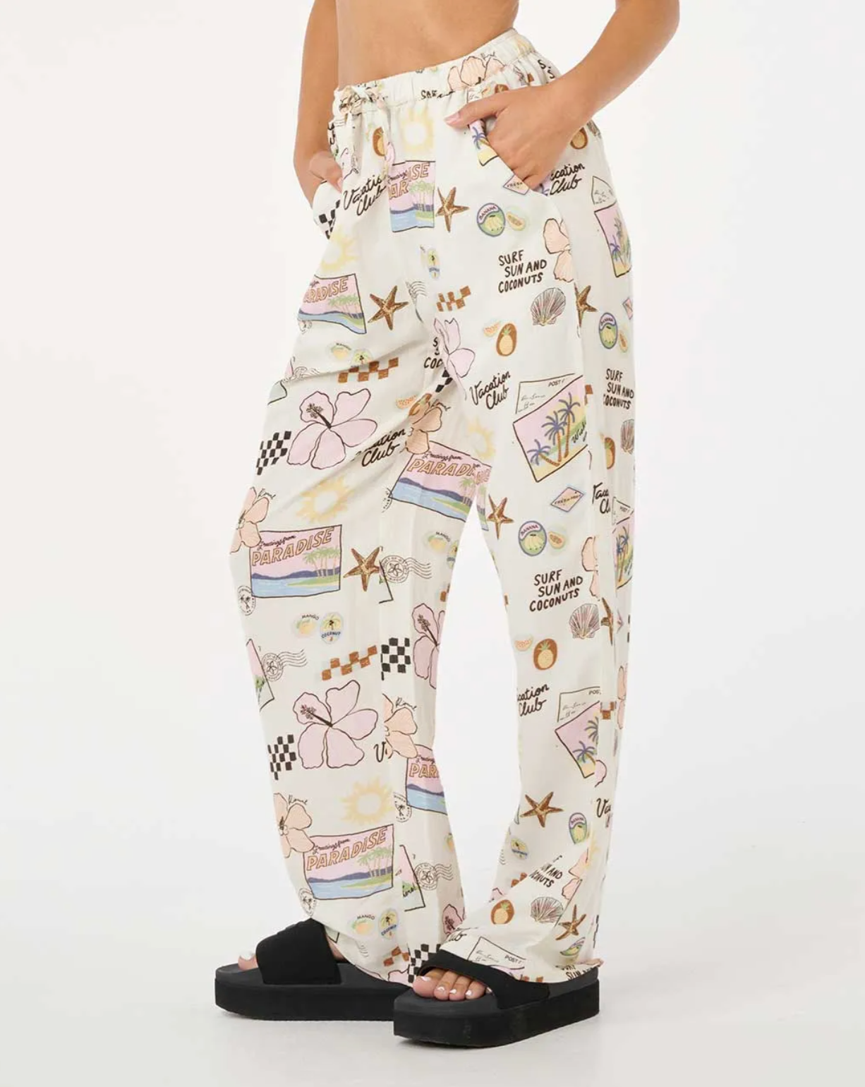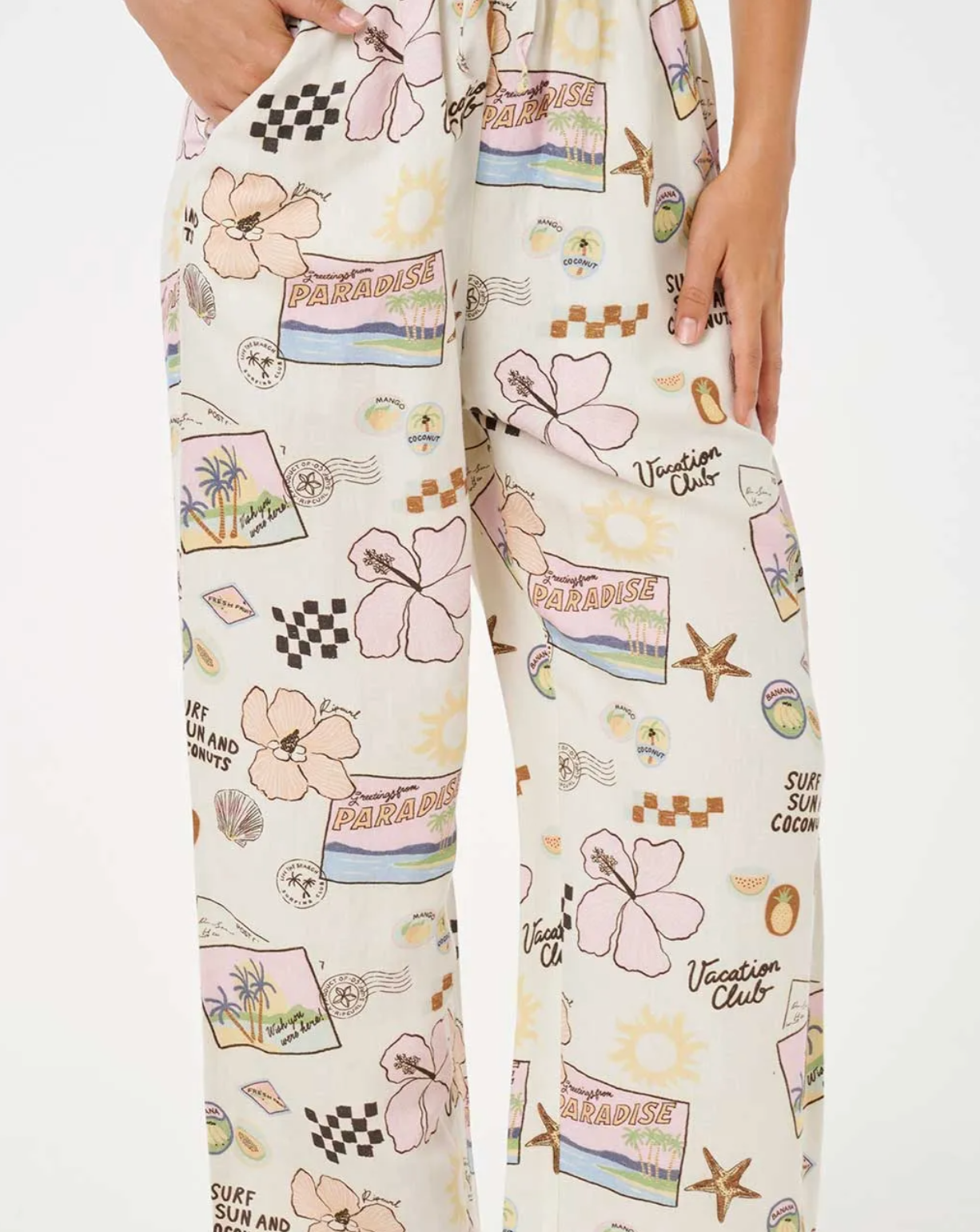 Relaxed and flowy, the Sunset Luau Wide Leg Pants feature a mid-rise design with elastic waist and drawcord. Made from soft linen-viscose fabric with an all-over yardage print and softener wash, they’re complete with a metal logo trim.