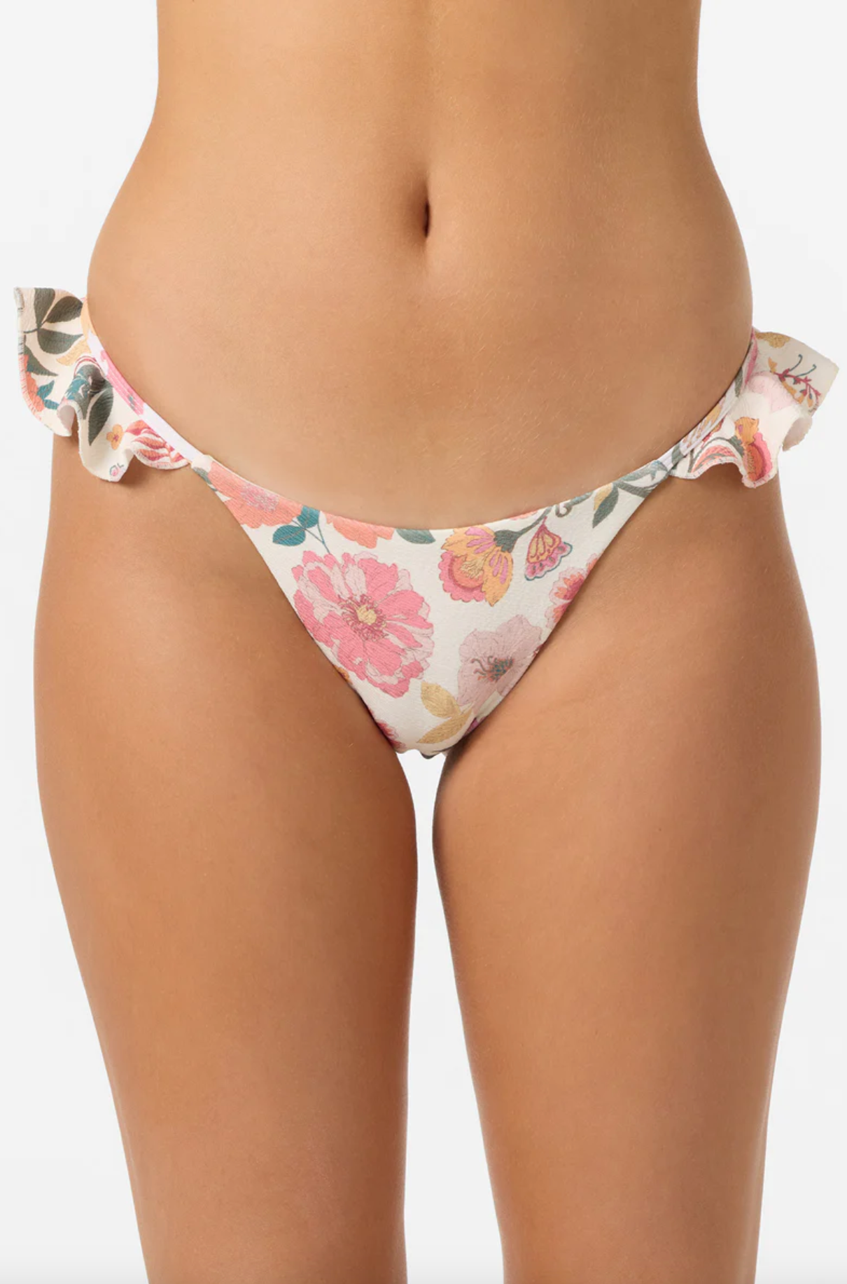 Get some sun or take a swim in this stylish bikini bottom. It has a cheeky coverage fit and single strap design with ruffle detail.