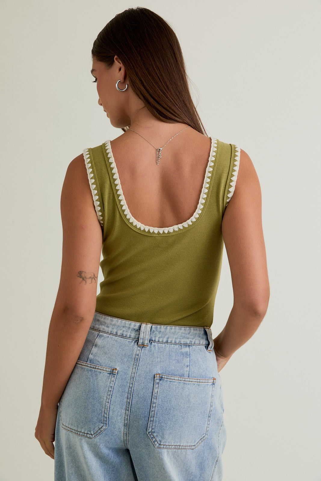 Edge Embroidery Sleeveless Bodysuit (Olive)