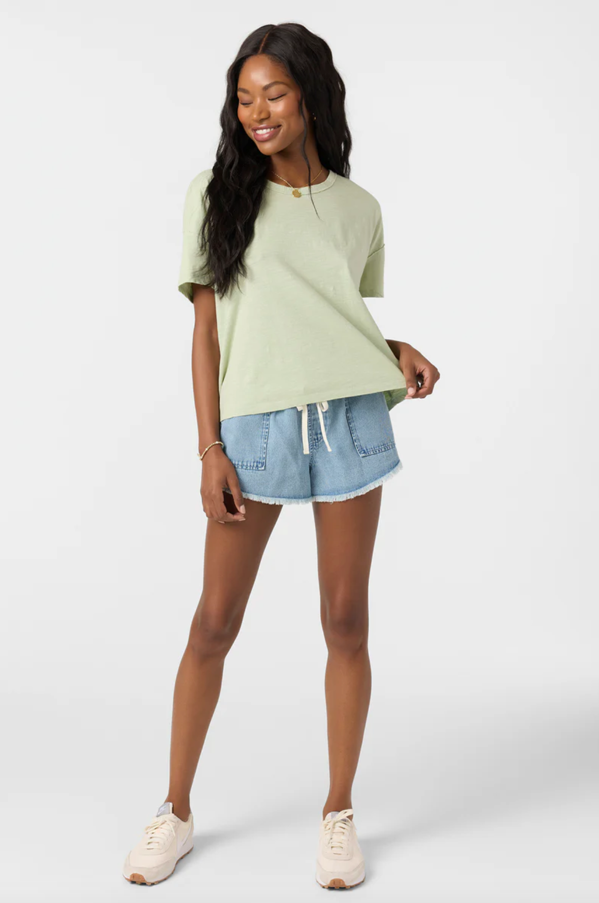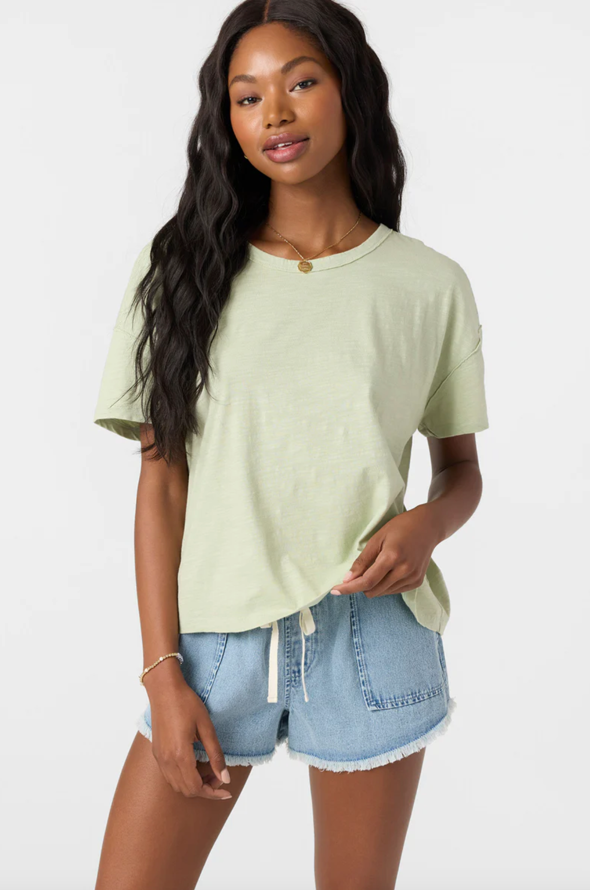 Embrace casual comfort in our perfectly slouchy knit tee. With its relaxed fit and thoughtful details like raw edges and whip stitching, this tee is your new favorite for everything from lazy Sundays to spontaneous adventures.