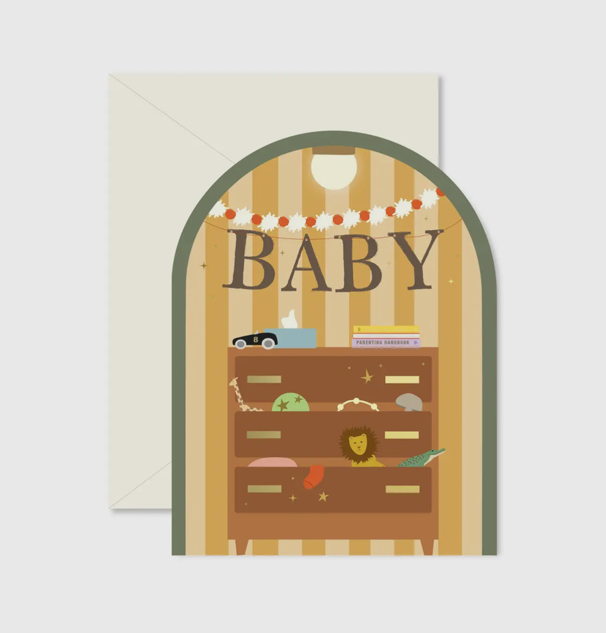 With gold foil. Full - color 4.25" x 5.5" folded greeting card. Blank interior.