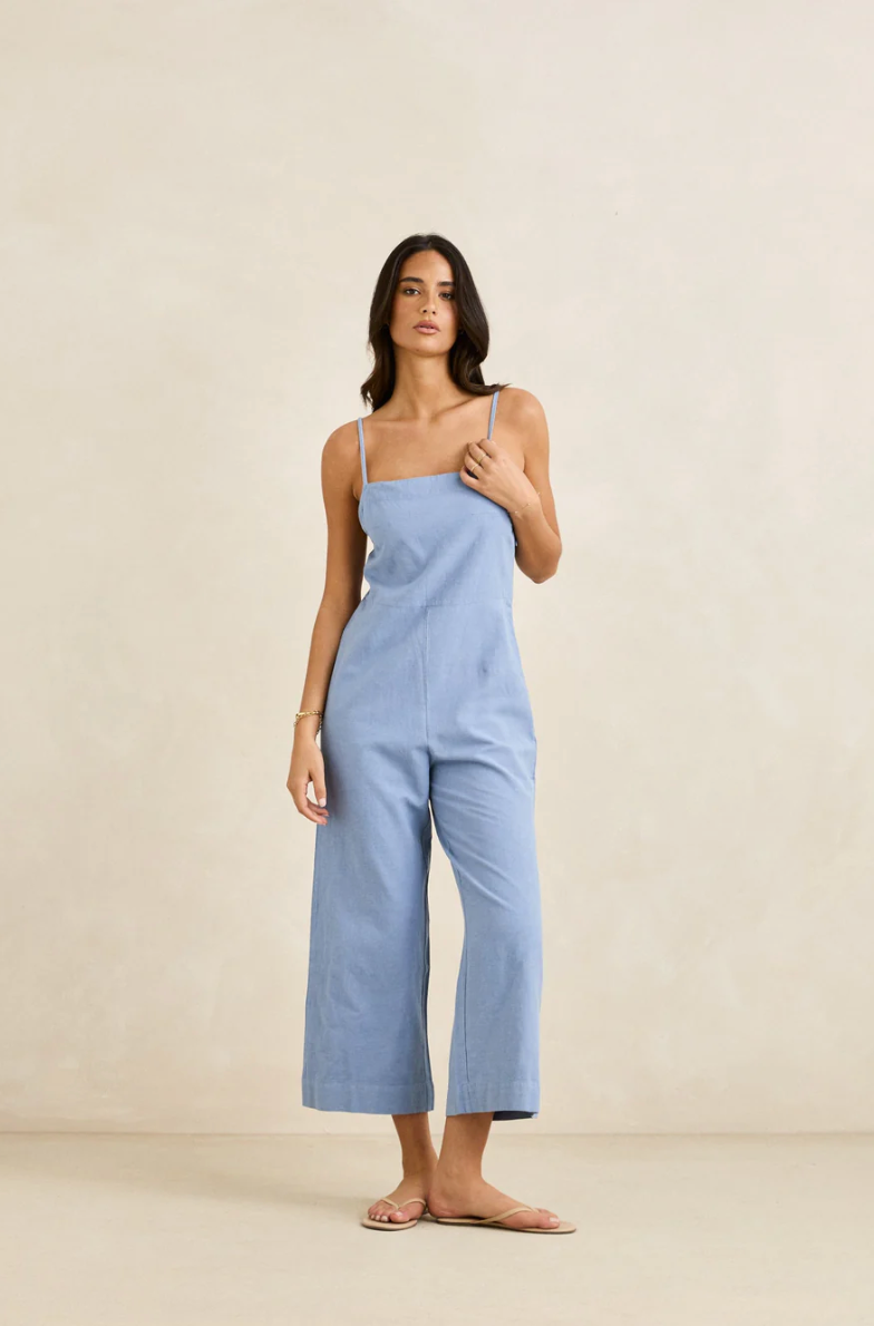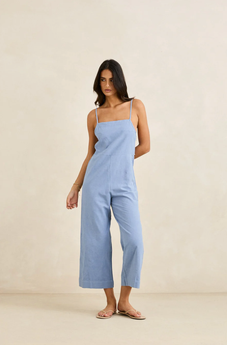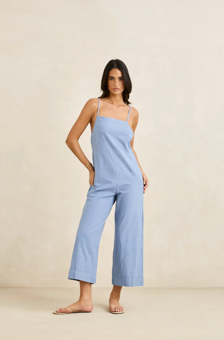 The Classic Jumpsuit in Steel Blue is a perfect blend of style and ease. With its straight apron-style neckline and adjustable straps, this wide-leg jumpsuit offers a flattering fit and chic silhouette. The low back detail adds a hint of allure, while the external Classics flag label at the back waistband completes the look, making it a staple for your wardrobe.