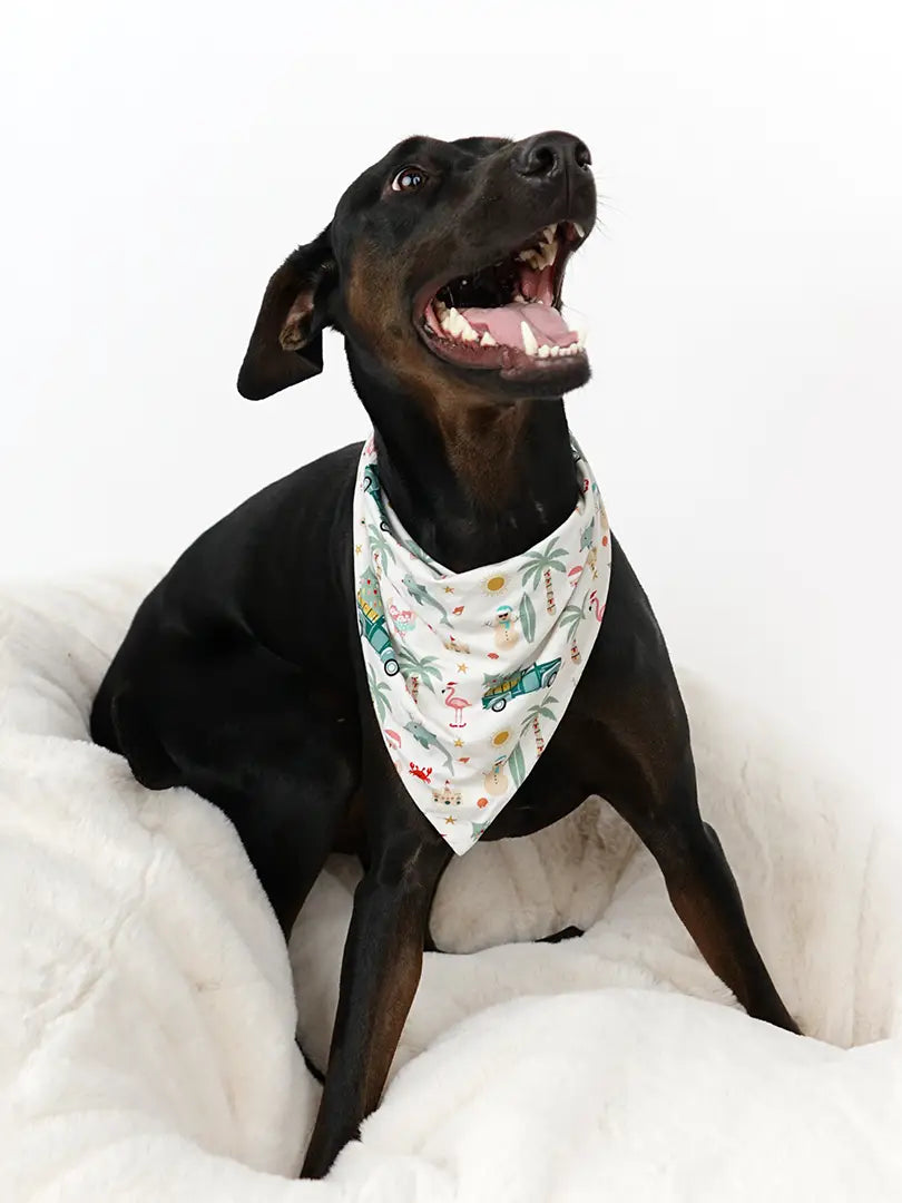 The softest viscose bamboo pet bandanas in our coastal christmas print. The family cat or dog can now experience the comfort of bamboo for itself in a stylish bandana! Pair these with our comfortable pajamas and daywear so the whole family can now match in our cutest owner designed patterns.