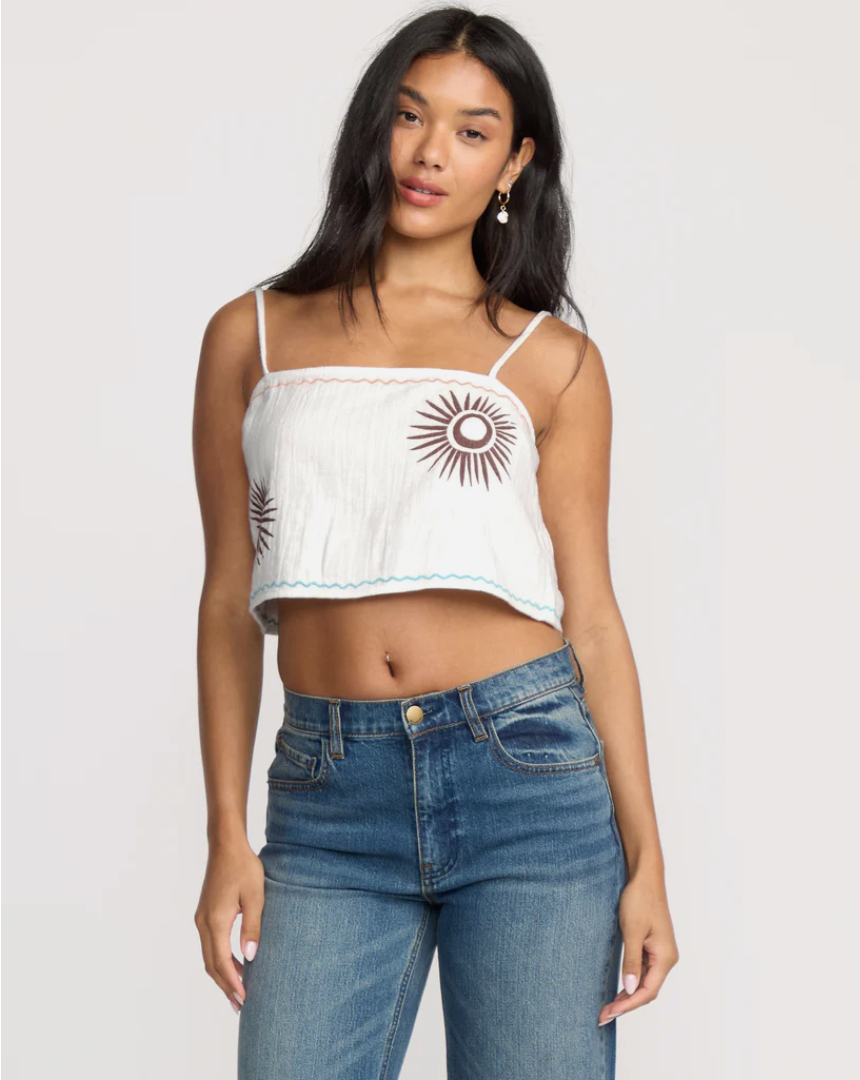 Our airy cotton tank features delicate embroidery and screen-printed details for a perfect blend of comfort and style. The regular fit and premium metal plate accent create an effortlessly cool look. Featured here in the White colorway.