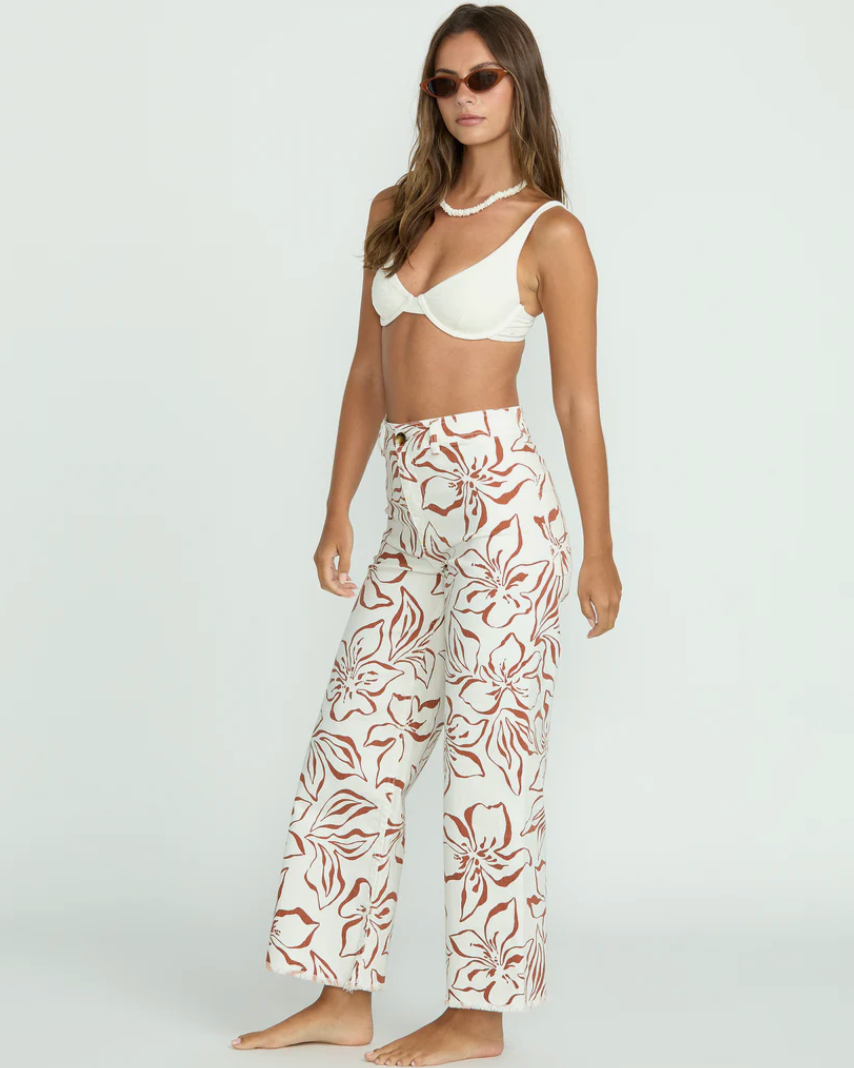 Our Free Fall Printed Twill Pants boast a billowy wide leg silhouette that dances with every step. With a cropped length and raw, frayed hem, this high-rise twill pair infuses any look with effortless, on-the-go style.
