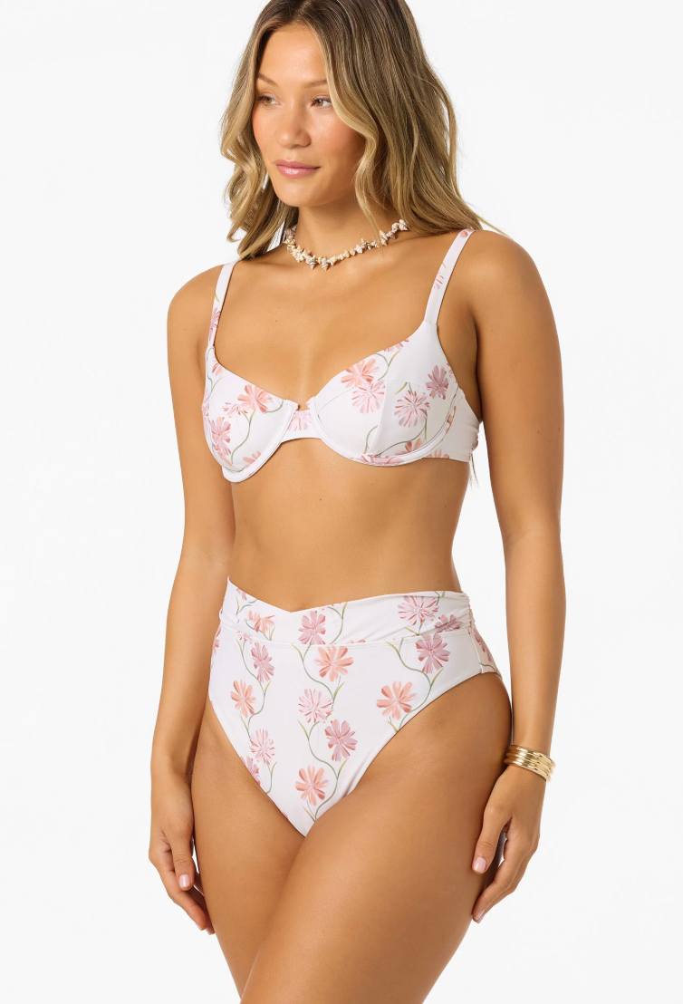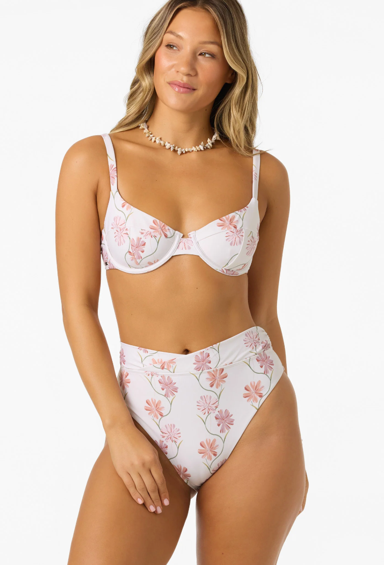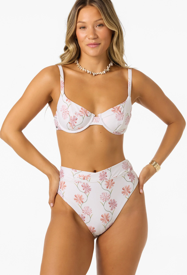The Ivy Floral Seashell Bra delivers vibrant style with reliable support. Underwire, removable cups, and adjustable straps ensure a perfect fit for confident, sun-filled days.