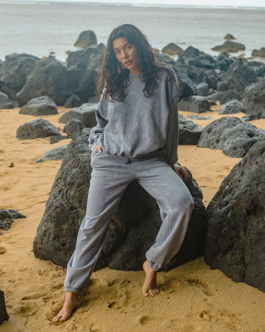 Our cotton-blend joggers bring laid-back comfort to your everyday style. The relaxed, high-waisted fit features convenient side pockets, while the specialty wash treatment adds lived-in character to the brushed fleece fabric. Featured here in the Blue colorway.