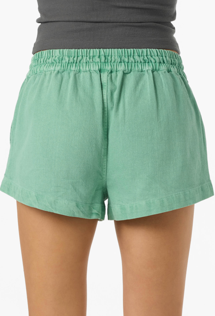 A casual woven short made with lightweight cotton twill fabric, featuring an elastic waistband and turnback hem for all-day comfort.