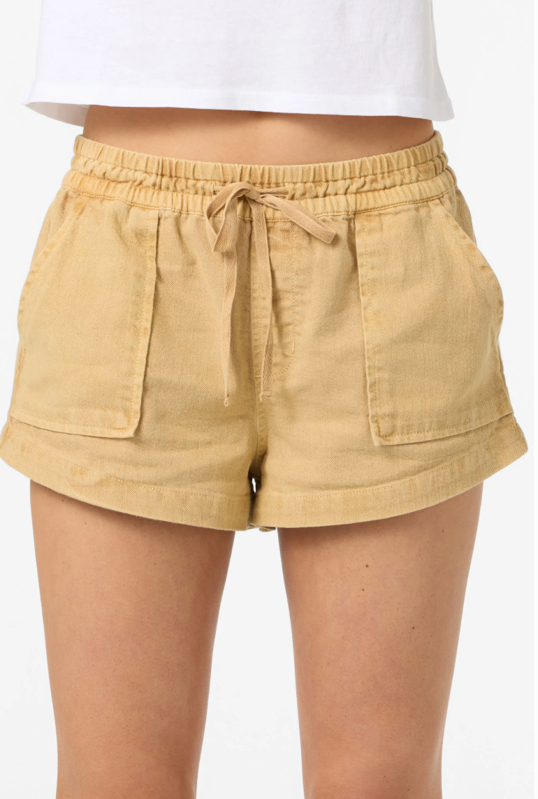 A casual woven short made with lightweight cotton twill fabric, featuring an elastic waistband and turnback hem for all-day comfort.