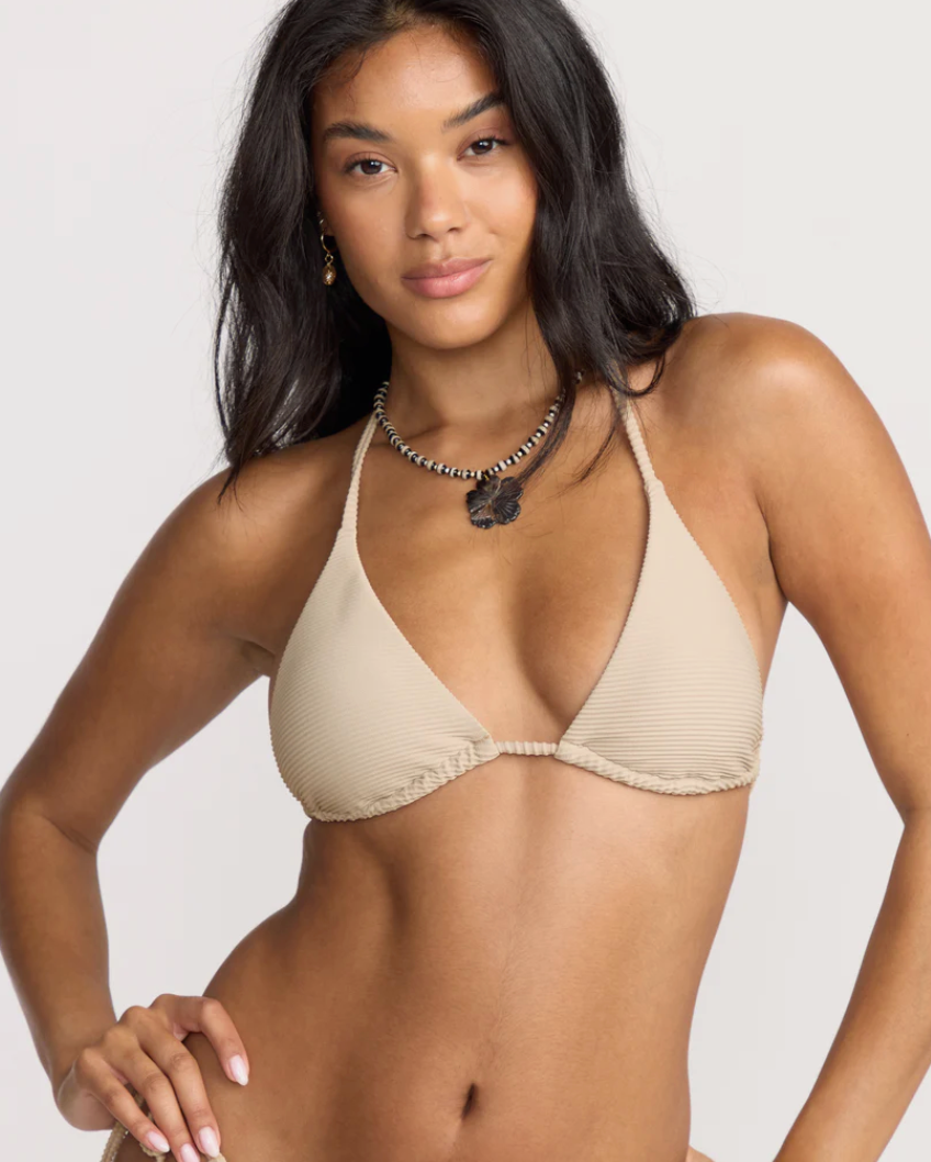 Effortlessly mix and match with this head-turning bikini top. Featuring adjustable ties and removable cups for confidence-boosting support, it's crafted in stretchy, partially recycled Tanlines Rib fabric with a subtle embroidered logo at the side seam. Featured here in the Cobblestone colorway.