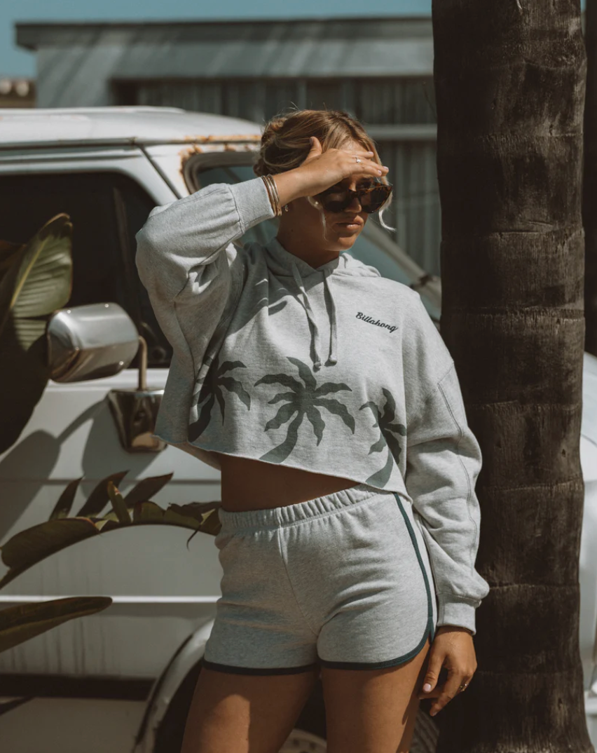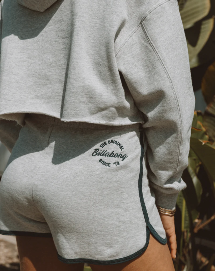 Soft heather-gray fleece brushes skin as our Triple Palms Dolphin Shorts bring laid-back ease and flattering curve-hem style. An elastic waistband flexes with every stride, contrast piping pops, back-hip embroidery seals the chilled-out vibe. Featured here in the Heather Grey colorway.