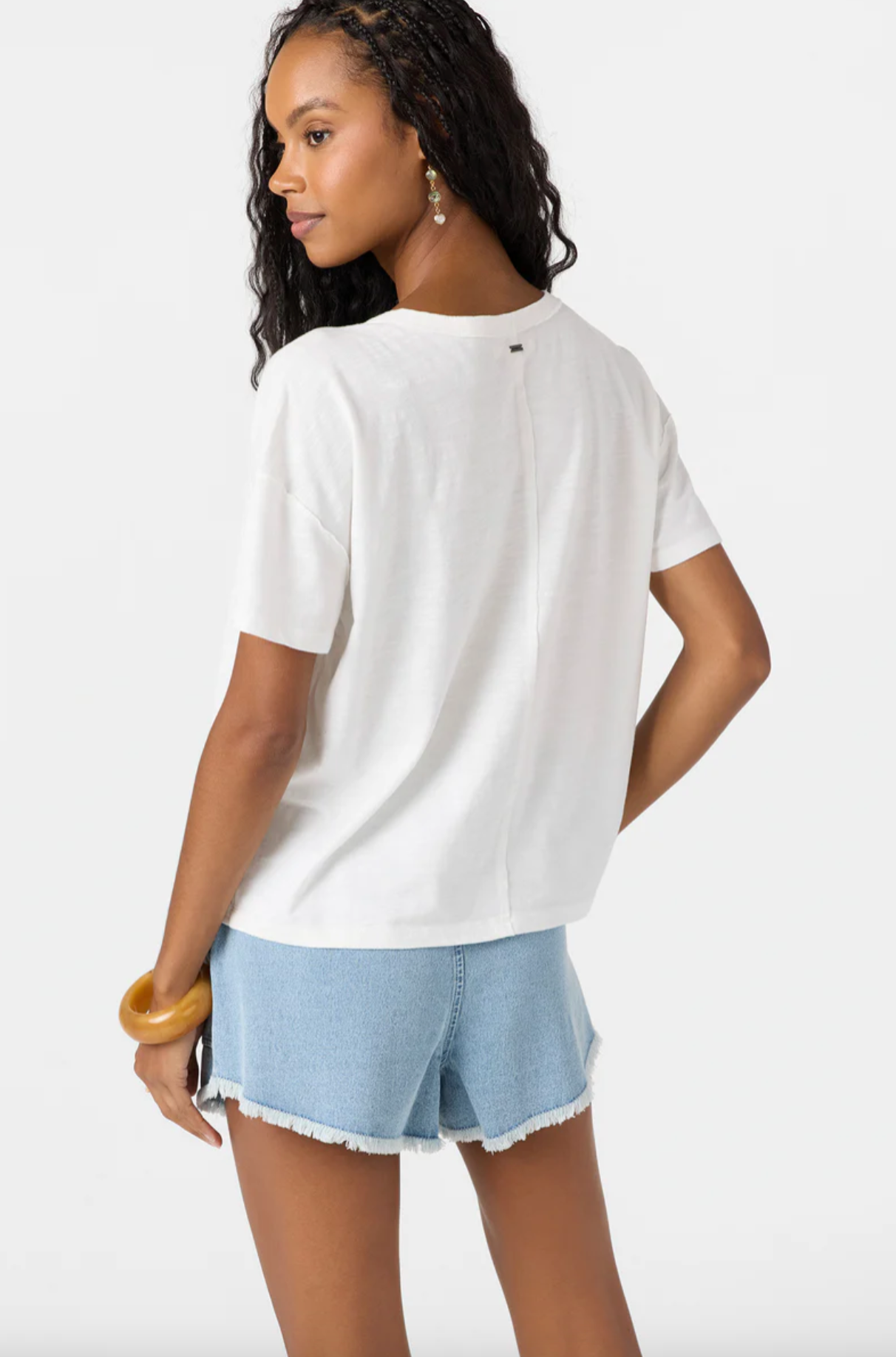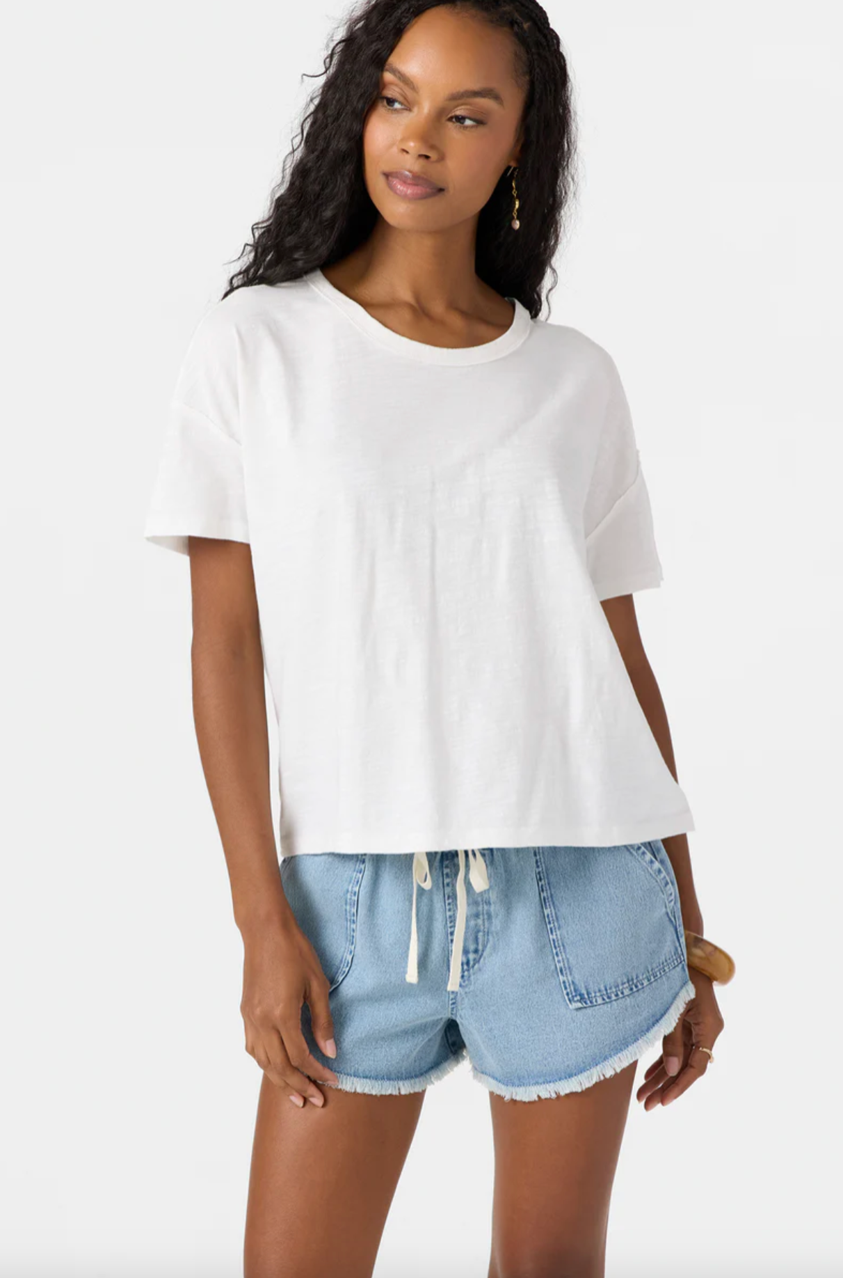 Embrace casual comfort in our perfectly slouchy knit tee. With its relaxed fit and thoughtful details like raw edges and whip stitching, this tee is your new favorite for everything from lazy Sundays to spontaneous adventures.