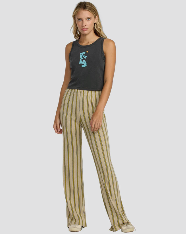 Product: Non-Denim PantsForm FittingKick FlareElasticated WaistbandRvca Metal Badge